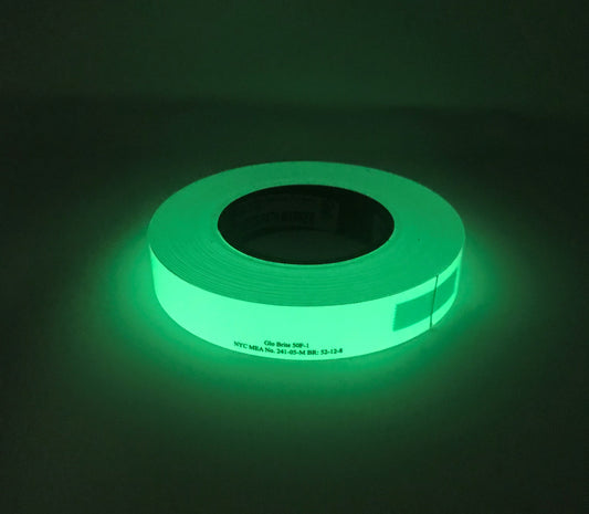 SPECIAL ORDER** - Meets New York City Construction Code MEA No. 241-05-M - 1" x 100' GLOW IN THE DARK Emergency Egress Tape - Case of 12 Rolls - 5-day processing