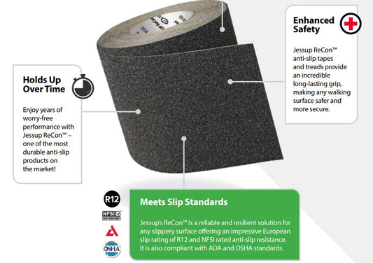 6" X 60' Roll ReCon BLACK Non-Slip Tape (Made with rubber recycled from footwear)