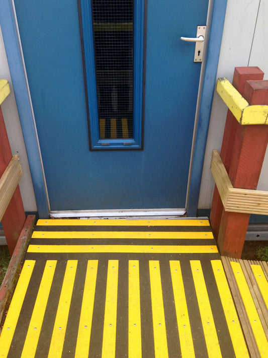6" X 24" BLACK with Yellow REFLECTIVE Stripe Non-Skid STEP TREADS - Pkg of 10