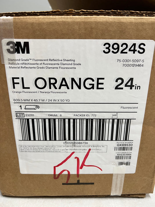 24" x 10' Foot Cut Roll** 3M Reflective Safety Tape Fluorescent Orange 3924S - Converted from Master Roll